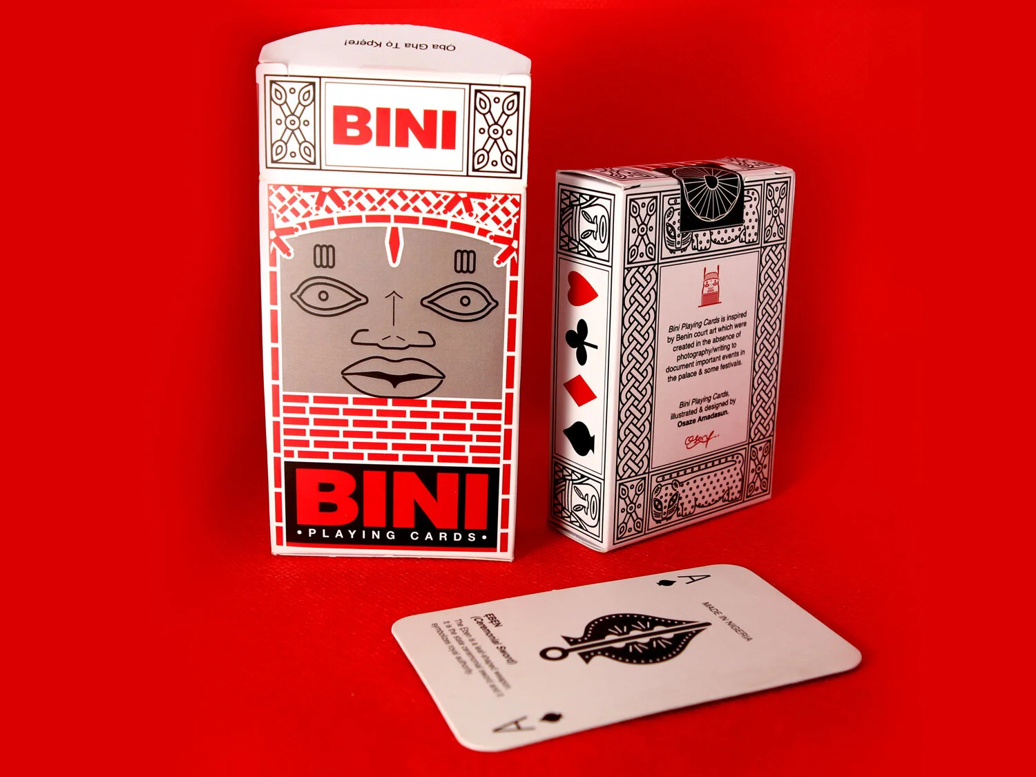 Inspired by culture, Bini playing cards pay homage to the ancient kingdom of Benin and its classical works of art. Benin court art were created in the absence of photography/writing to document important events in the royal palace and some festivals.